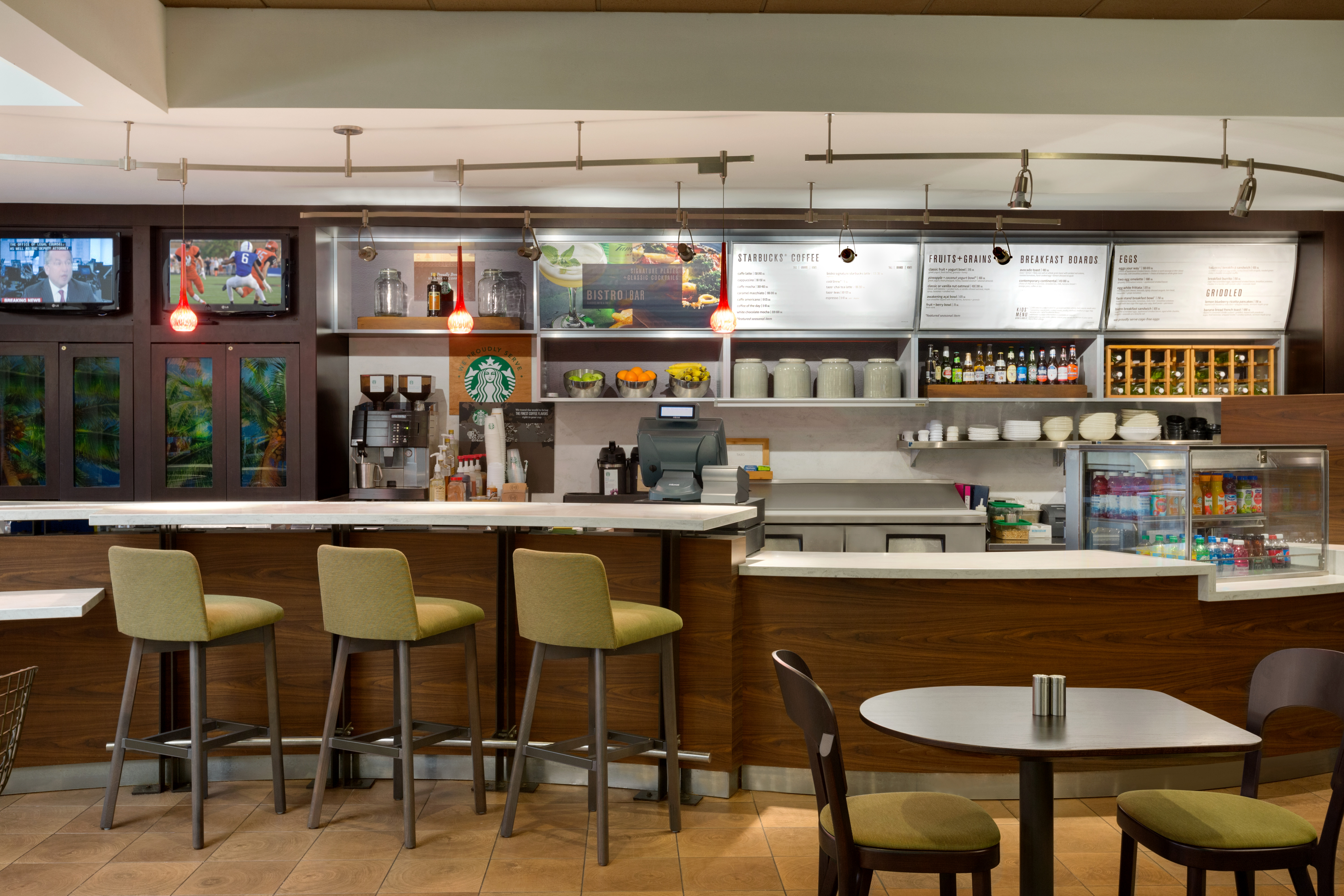 Our newly renovated Courtyard by Marriott Fort Myers Cape Coral boasts newly renovated guest rooms and public spaces ideally situated near pristine Gulf Coast beaches and downtown Fort Myers. Convenient for travelers, our hotel is near the Fort Myers airport, Southwest Florida International (RSW). Explore popular destinations like CenturyLink Sports Complex, Harborside Event Center and Edison Ford Winter Estates. Stay in our Fort Myers hotel near JetBlue Park, home of Boston Red Sox spring training. Start your day satisfied with a tasty breakfast sandwich & specialty Starbucks® beverage at The Bistro, then return for an evening meal paired with bar service. Following an action-packed day, retreat to relaxation in our brand new guest rooms & suites with free high-speed Wi-Fi, modern TVs and signature Marriott bedding. Work up a sweat with a brisk workout in our 24-hour fitness center, then cool down while making a splash in our outdoor pool. Enjoy all the Courtyard Fort Myers Cape Coral hotel has to offer.