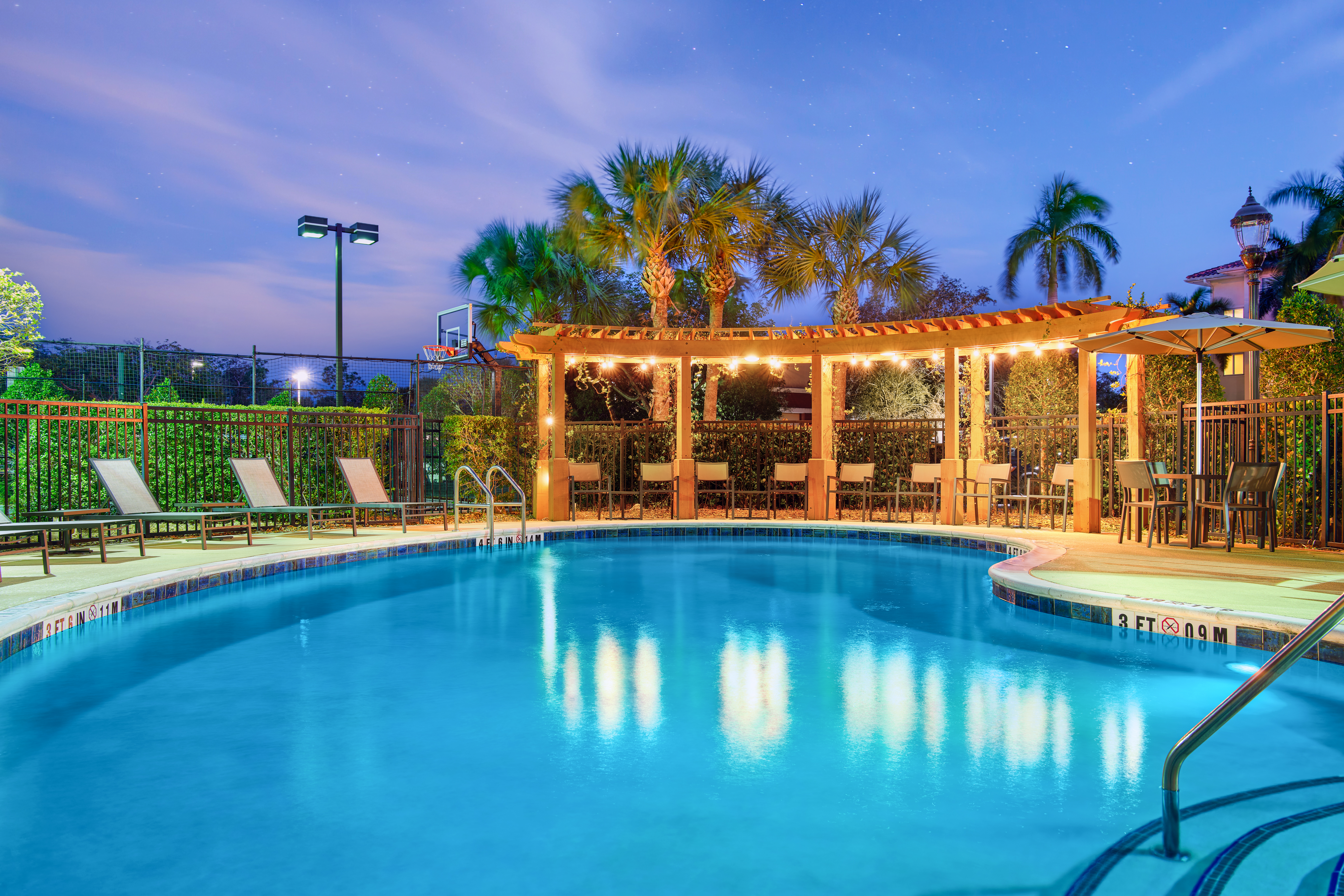 Residence Inn Gulf Coast Town Center features 116 rooms consisting of 60 studio bedrooms, 43 one bedrooms and 13 two bedrooms. Conveniently located within the Gulf Coast Town Center off of I-75, Alico Road, Fort Myers FL. Spacious suites with full kitchen and separate areas for sleeping, working, eating and relaxing. Free breakfast and complimentary WIFI, pets allowed, non-refundable sanitation fee: 100 USD; contact hotel for details.