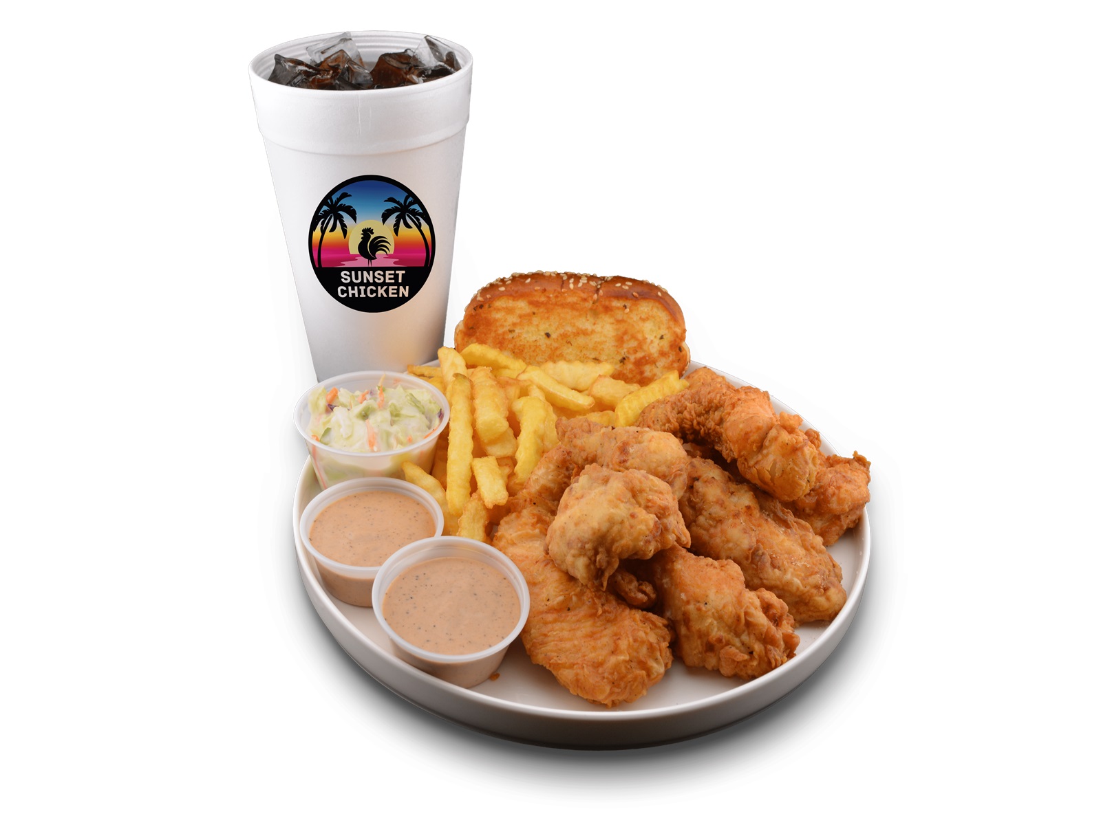 Sunset Chicken is a locally owned fast-casual restaurant serving fresh, hand-breaded chicken tenders, crispy wings, and hearty family meals made to order. Known for generous portions, golden fries, house-made coleslaw, Texas toast, and its signature in-house sauce, Sunset Chicken offers bold flavor with a relaxed Florida vibe. With combo meals, shareable buckets, and options perfect for takeout, beach days, and family dinners, Sunset Chicken has become a go-to spot for locals and visitors throughout the Fort Myers–Cape Coral area.